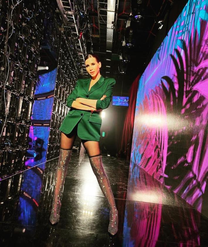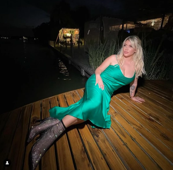 El look navideño de Wanda Nara: de verde y con las botas que son sensación