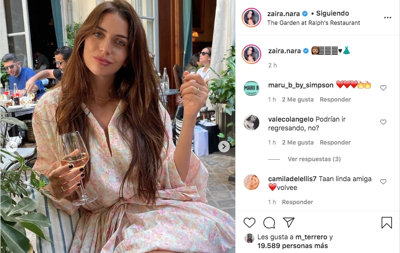 En un posteo que compartió Zaira hace pocas horas, presumió de su elegante salida y mostró algunas postales de su tarde a puro brindis con la empresaria cosmética y manager futbolística, con quien viene compartiendo diversidad de salidas en plan cómplice.