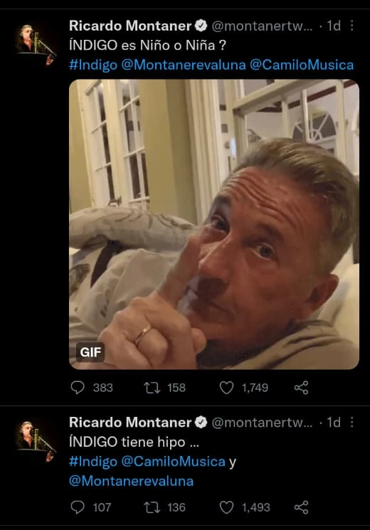 El primero de ellos fue, “Índigo tiene hipo…”, fue entonces que muchos se preguntaban si ya habría nacido y si su abuelo por error se había adelantado a sus padres ha hacerlo público. Pero nadie del clan Montaner salió a aclararlo y sus posteos continuaron, “Índigo es niña o niño?”, se preguntó en un video.