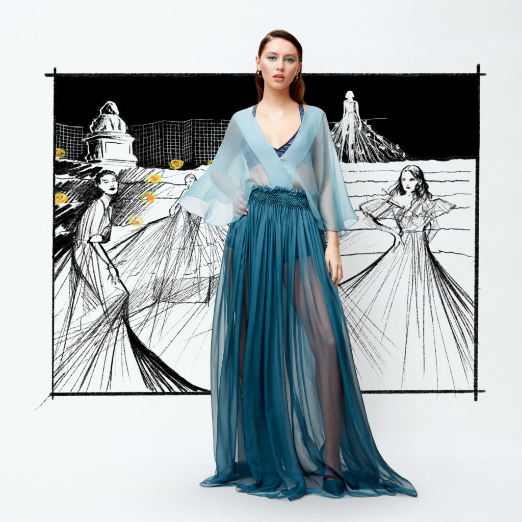 Como era de esperarse en un desfile de Chiuri, el arte ocupó un lugar preponderante, con la coreografía creada por Sharon Eyal y cinco teasers ideados por jóvenes ilustradoras.