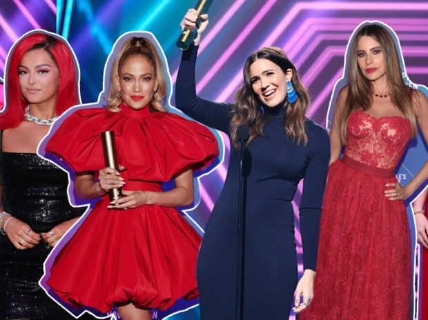 Jennifer Lopez eligió un vestido rojo de Christian Siriano con un gran volado en el cuello y falda balloon. Fue una de las grandes ganadoras de la noche, al recibir el reconocimiento People's Icon.