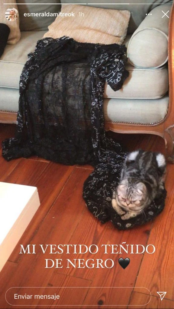 Su vestido de miles de dólares terminó siendo el lugar elegido por la gatita rusa que le regaló su madre, Blanca Álvarez de Toledo, para dormir la siesta.