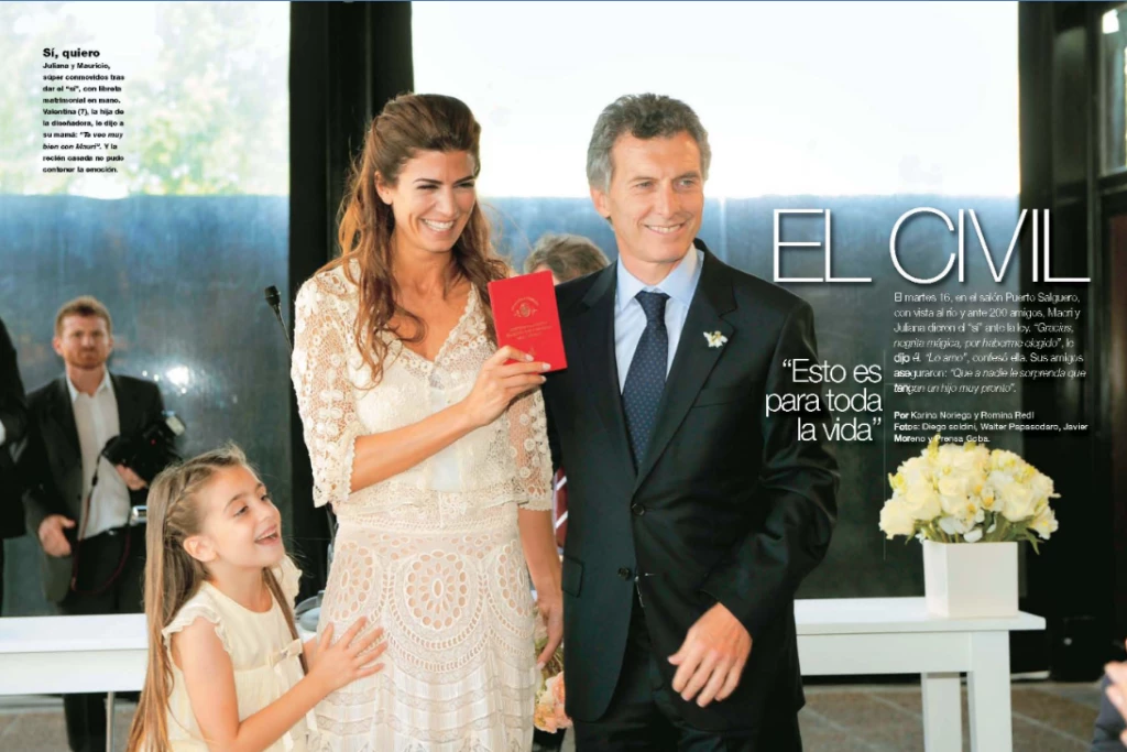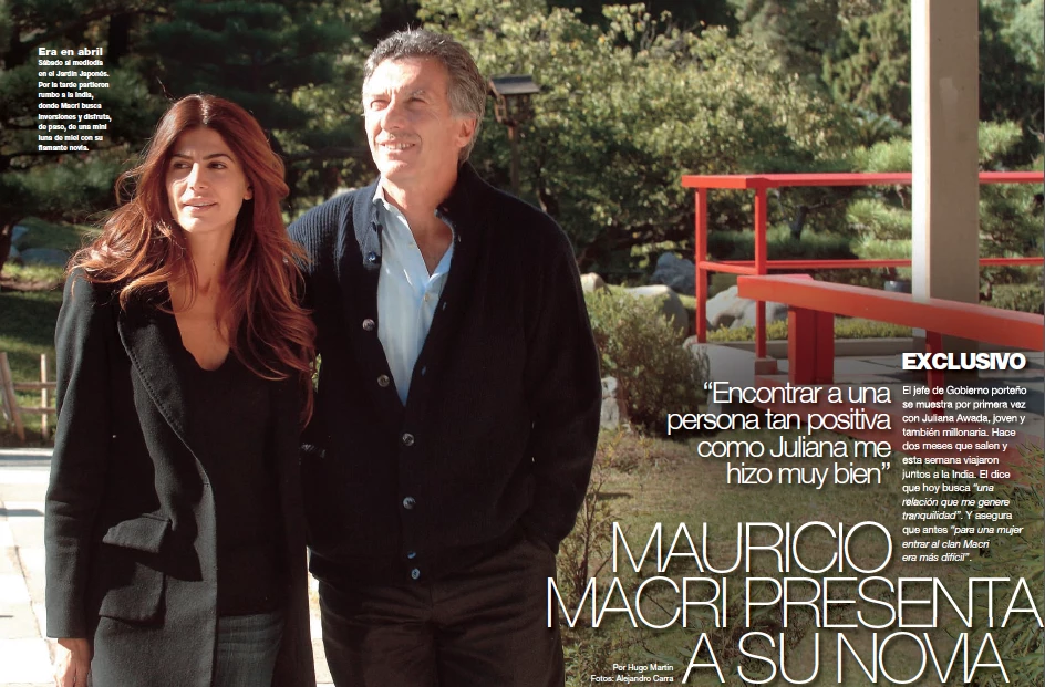 En abril de 2010, cuando apenas llevaban dos meses de relación –se conocieron al compartir "el mismo círculo social"–, Macri presentaba en las páginas de GENTE a su nueva novia, Juliana Awada. Su último vínculo había sido con Malala Groba, con quien había terminado en diciembre de 2009.