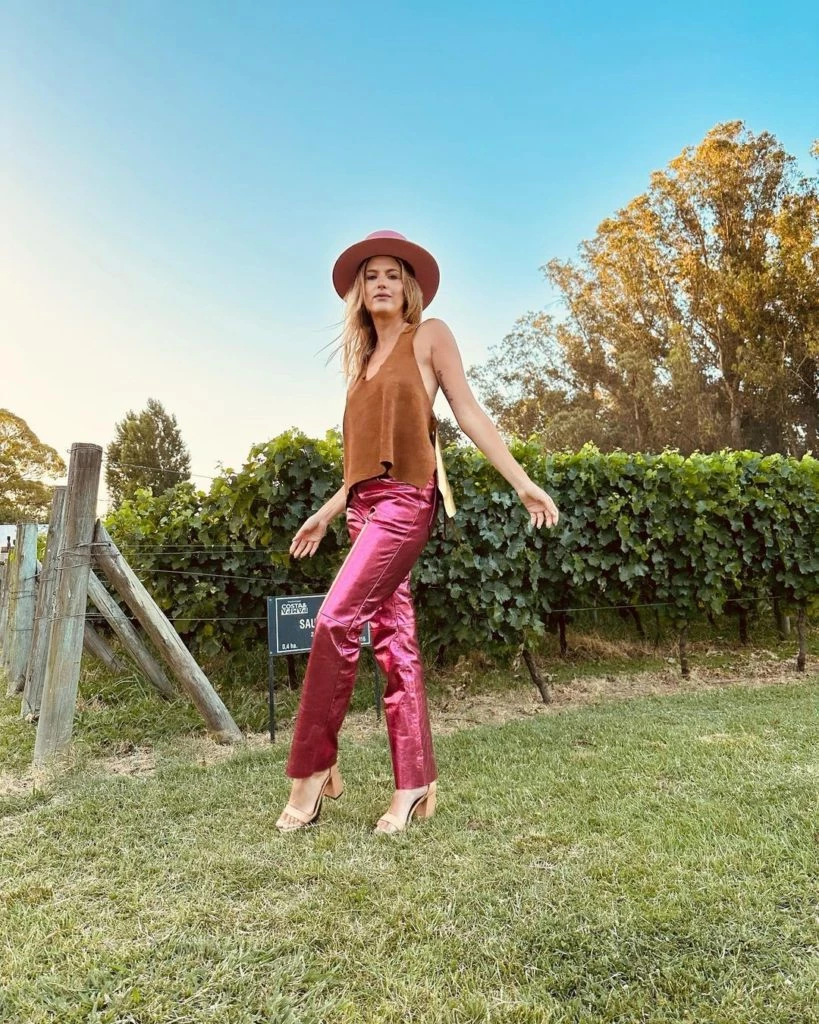 Mery lució recientemente el outfit mas trendy de la temporada: pantalón rosa metalizado combinado con el género menos pensado: gamuza. La mixtura de telas vanguardistas y rústicas lograron imponer la impronta de una mujer que pisa fuerte. En este caso sí hubo un accesorio protagonista que fue el sombrero de paño rosa pastel. Las sandalias elegidas fueron de taco alto y ancho en un discreto nude. Las hijas de la actriz Mila y Cala deben estar felices de tener en casa una auténtica “Barbie-mother”