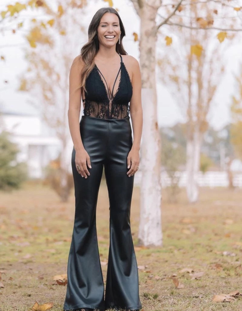 Fashionista por naturaleza, Pampita mostró varios looks en color negro y lució increible con todos los outfits. Es más, en uno de los equipos que eligió optó por un pantalón de cuero ecológico, el material tendencia de este invierno 2022.