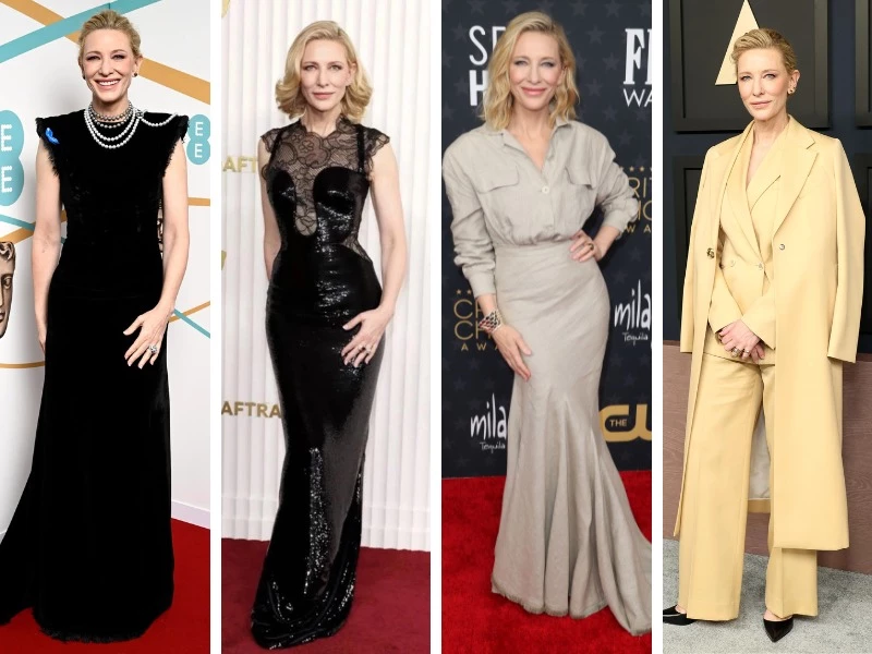 Como nos tiene acostumbrados, Cate Blanchett (la también nominada a Mejor Actriz por Tár) siempre se luce al elegir estilismos que van desde los más sofisticados a los más versátiles. Es toda una experta a la hora de explotar ante los flashes sus distintas facetas.