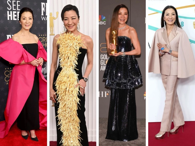 Confiada en la experiencia de la estilista Jordan Johnson, Yeoh se ha inclinado por firmas como Carolina Herrera, Valentino, Gucci y Bottega Veneta con gran éxito, y es de esperarse que sea una de las mejor vestidas en los premios de la Academia.