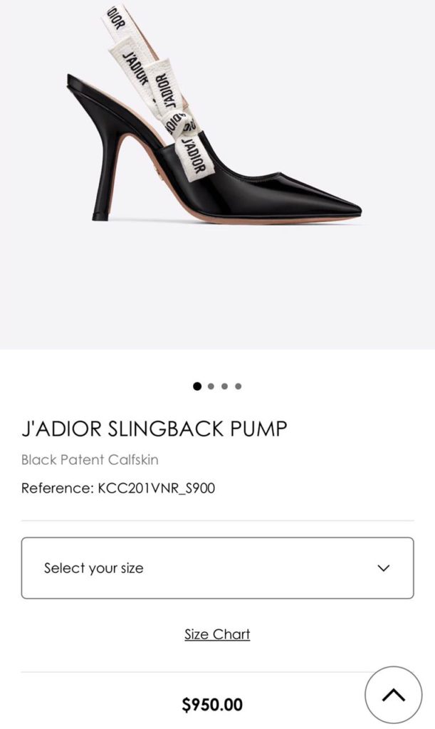 Los zapatos en piel de becerro charol negra se destacan por las cintas bordadas con la leyenda J'Adior que rematan en moño en los laterales y por sus cómodos 10 centímetros de alto.