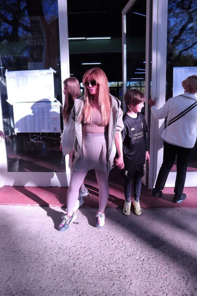 La periodista Cristina Pérez eligió un clásico traje sastrero marrón con sutiles rayas claras sobre una remera blanca para emitir su sufragio en la sede de la UCA en Puerto Madero. Otros famosos eligieron ir acompañados. Mica Viciconte, panelista de Ariel en su salsa, posó junto a su hijo Luca, fruto de su relación con Fabián Cubero, y escribió: “Votamos ya”.