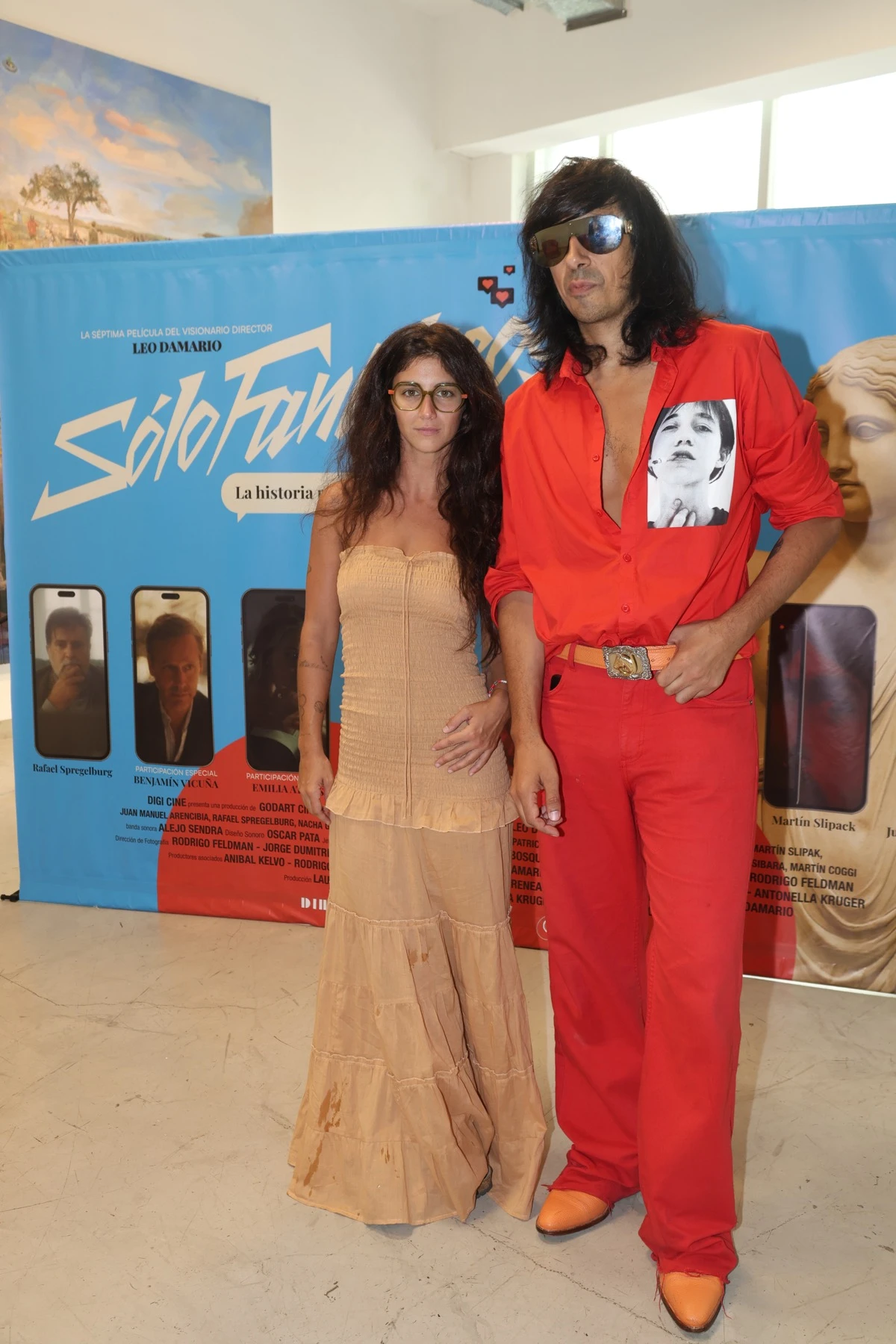 En el evento íntimo que fue ante sala de la avant première, el director reafirmó su identidad punk con un total look en rojo fuego, mientras que la China Kruger vistió un diseño arquitectónico de Pablo Ramírez.