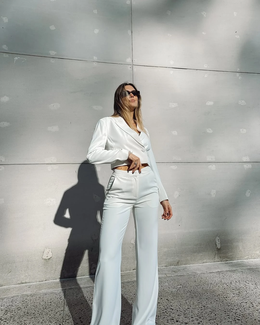 “Es importante tener outfits de este color porque reflejan frescura y porque los tonos claros mantienen ayudan a repeler las altas temperaturas. El total white está reflejado mucho en la seguridad de la persona, en cómo quiere reflejar la luz en su cuerpo. Si bien los colores blancos son traicioneros, ya que te dan más volumen, al contrario que los colores oscuros como el negro que te quitan volumen, todo depende de la seguridad de la persona”, explica a Revista GENTE.