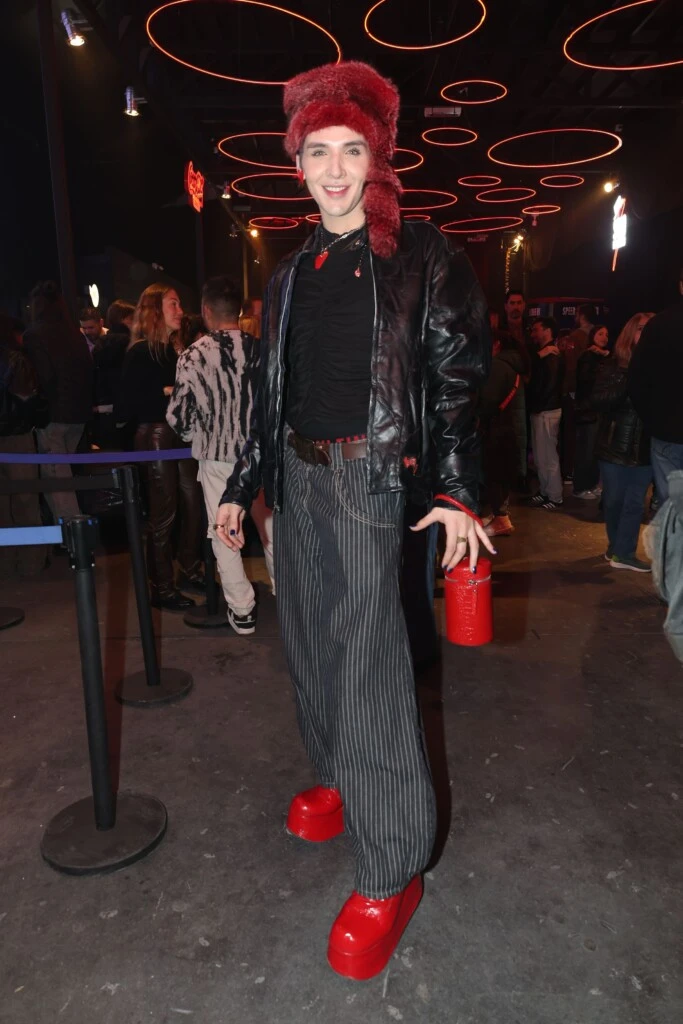 Furia apostó por un conjunto negro y blanco, combinado con una campera biker de cuero y botas altas. El toque lo marcó su clutch joya, ideal para modernizar el outfit.
