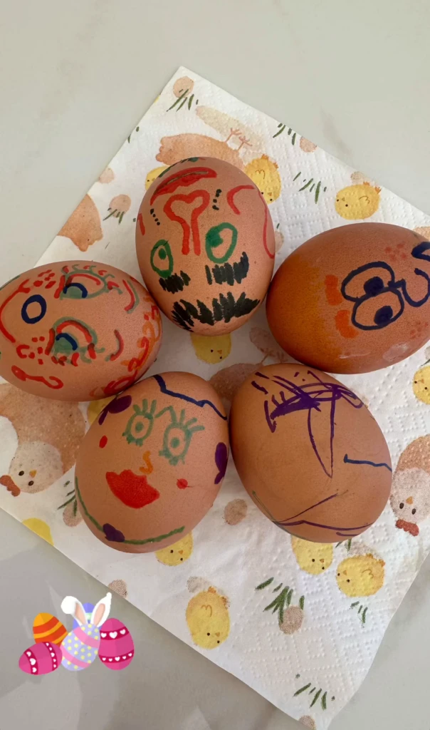 Además de buscar huevos escondidos en el jardín, Daniela Christiansson organizó un itinerario de pura diversión: puso a su hija a colorear huevos, preparó un pastel de carrot cake y lo decoraron juntas y merendaron en familia, con una increíble y colorida mesa.