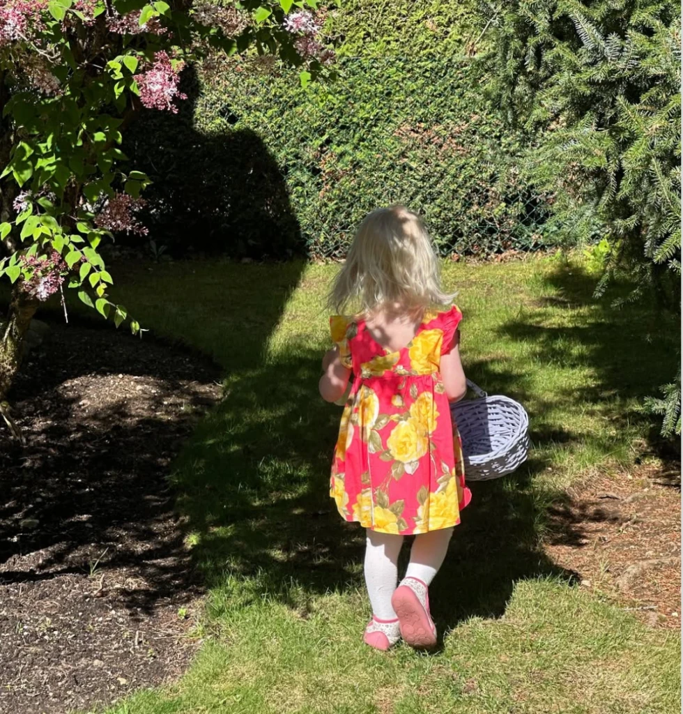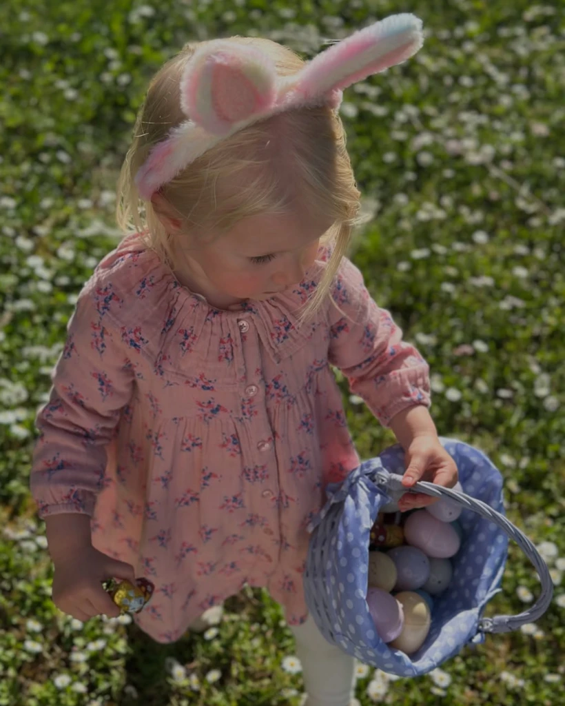 En el jardín de su casa en Ginebra, Suiza, la pequeña se animó a conseguir todos los huevos que estaban escondidos y guardarlos en su colorida cesta, muy a tono con su look de tonos pasteles.