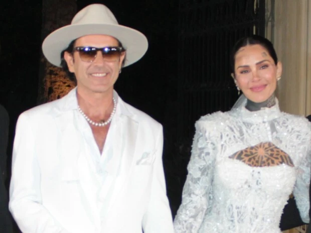 Para la ceremonia, los novios eligieron un look total white que se destacó ante las cámaras.
