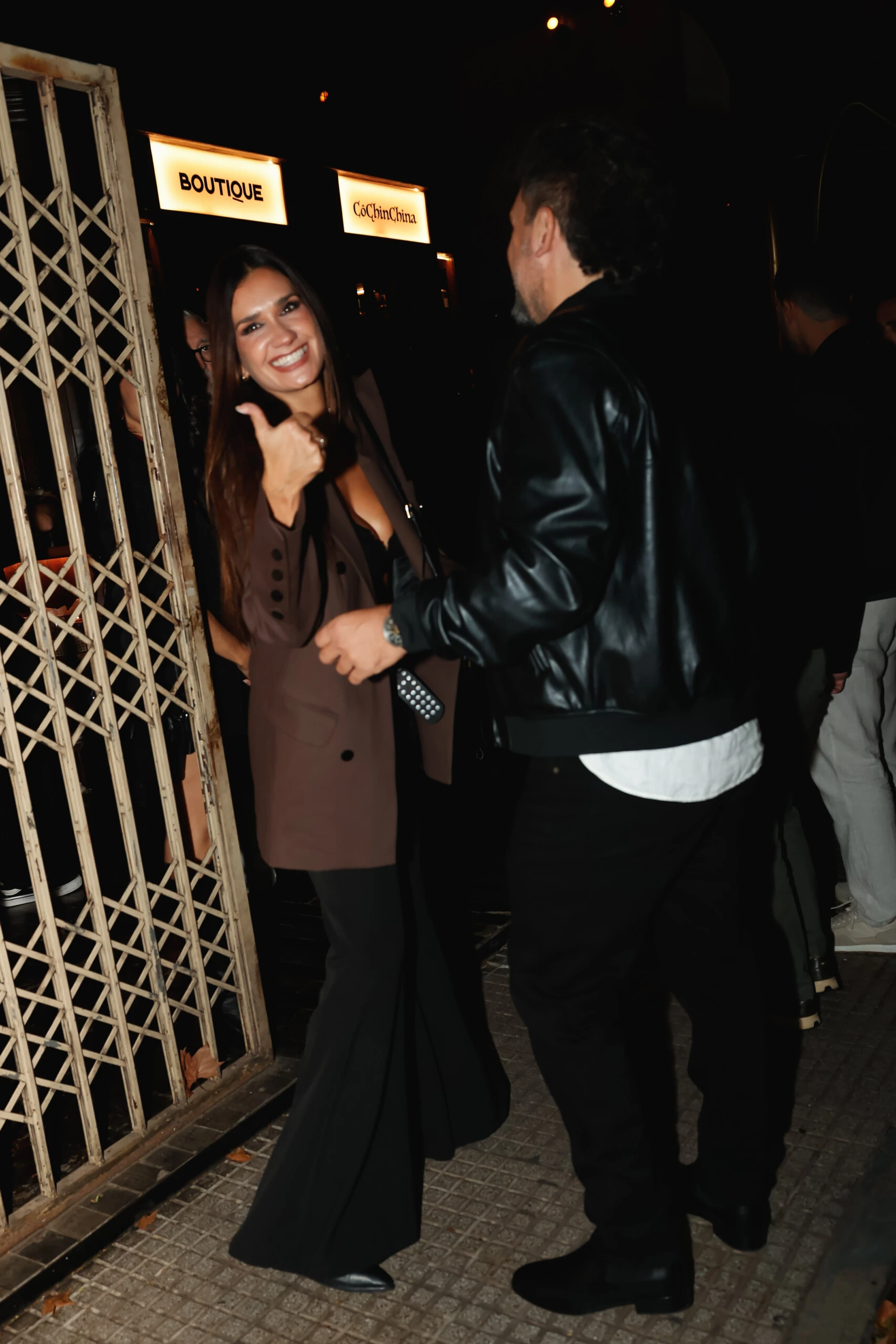 Desde su llegada, la cumpleañera acaparó todas las miradas. La influencer y presentadora apostó por un look audaz y sofisticado, fiel a su estilo descontracturado pero siempre chic. Eligió un blazer oversize en tono marrón chocolate, con corte sastrero y botones negros, que llevó abierto para dejar ver un corpiño de encaje negro, sumando un toque sensual y moderno al outfit.