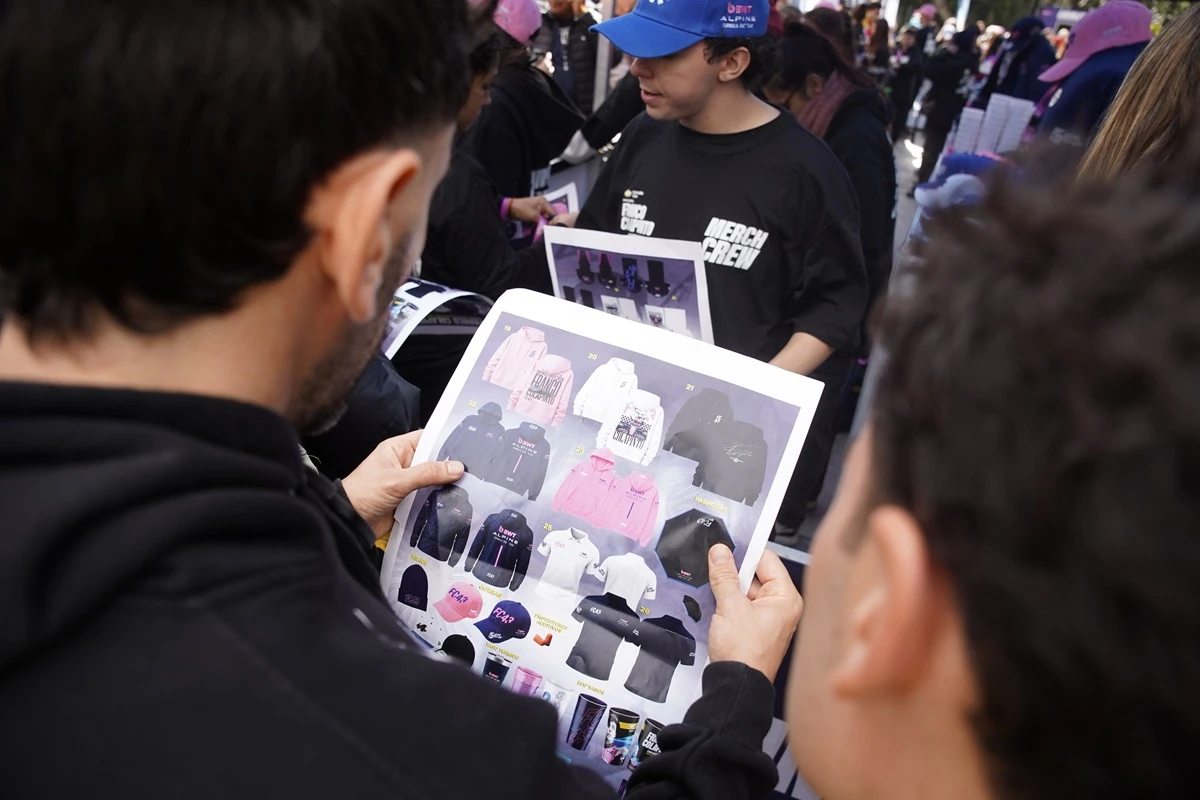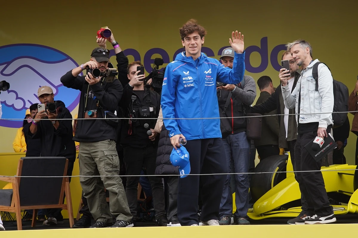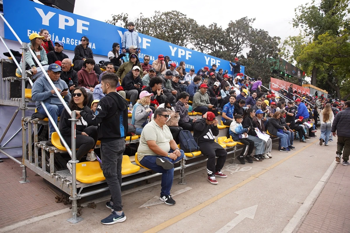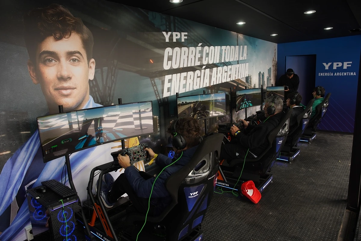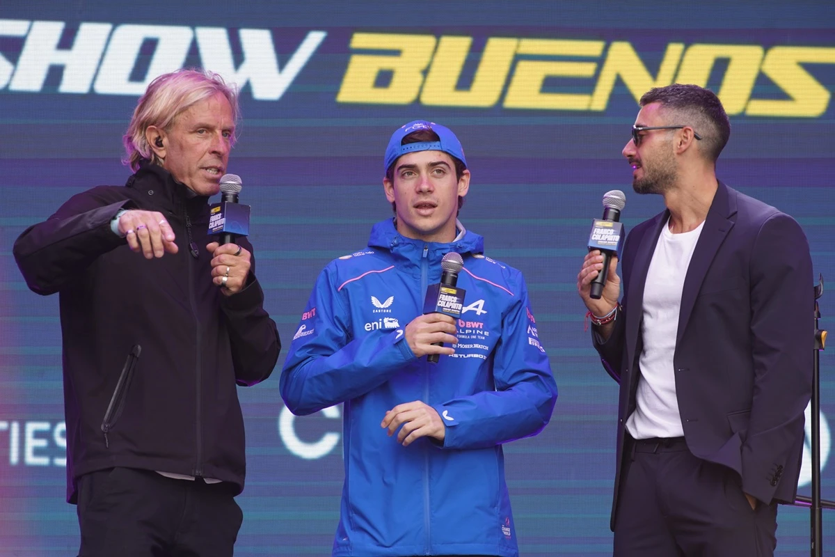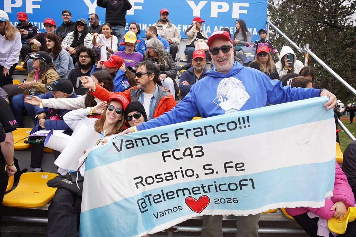 Franco Colapinto junto a Nico Occhiato y el periodista Juan Fossaroli.Una de las tribunas desde las que se podrá ver a Franco, con gente de todas las edades.El merchandising fue parte del road show de Colapinto.Algunos de los autos que están en exhibición en el lugar.Colapinto saludando a sus fans.María Catarineu y Jamie Campbell-Walter, representantes de Colapinto.Los simuladores también fueron parte de la jornada.Las banderas se multiplicaron por todas las tribunas.Un pedido muy particular para Colapinto.