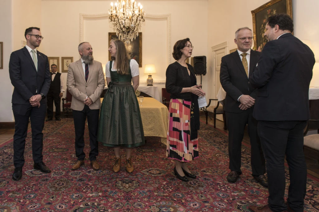 Mediante una recepción y un posterior cóctel, el embajador austríaco Andreas Melán y su esposa, Patricia Melán-Csik, organizaron un encuentro diplomático en la residencia oficial el miércoles 26 de octubre por el Día Nacional de Austria. El evento contó con alrededor de 300 asistentes entre los que se destacaron el embajador estadounidense Marc Stanley y los embajadores de Bélgica, Francia y Ecuador. El relacionista diplomático Ariel Blufstein también estuvo presente en el encuentro.