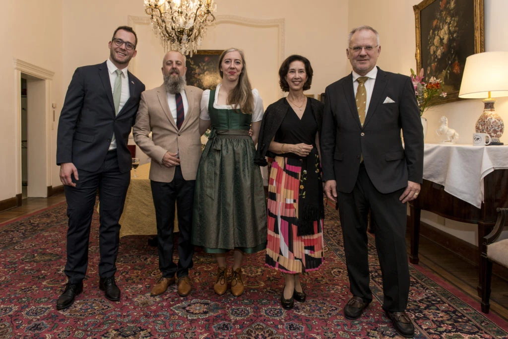 El evento comenzó a las 18.30 con la recepción. Luego, Andreas Melán ofreció un discurso en el sector exterior de la residencia, donde habló acerca de cómo afectó la pandemia en las tareas diplomáticas y del grado en que la guerra entre Rusia y Ucrania impactó en todo el mundo.