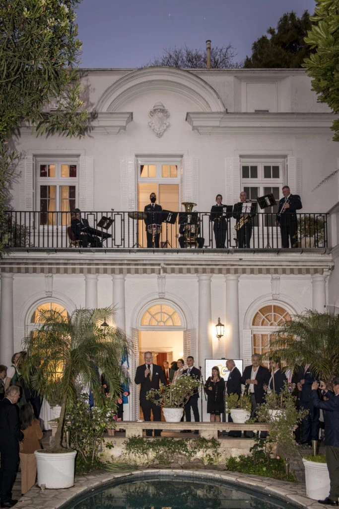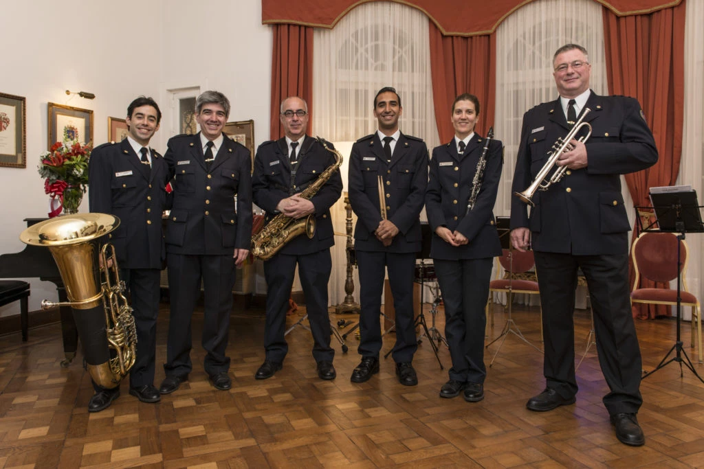 Tras el discurso, Andreas Melán dio la bienvenida de los invitados a la residencia y comentó cuál sería el menú de la noche, compuesto por platos principales y postres típicos de Austria. La recepción finalizó con el concierto de la banda de la Policía Federal Argentina con Fabio Zurita en el piano.