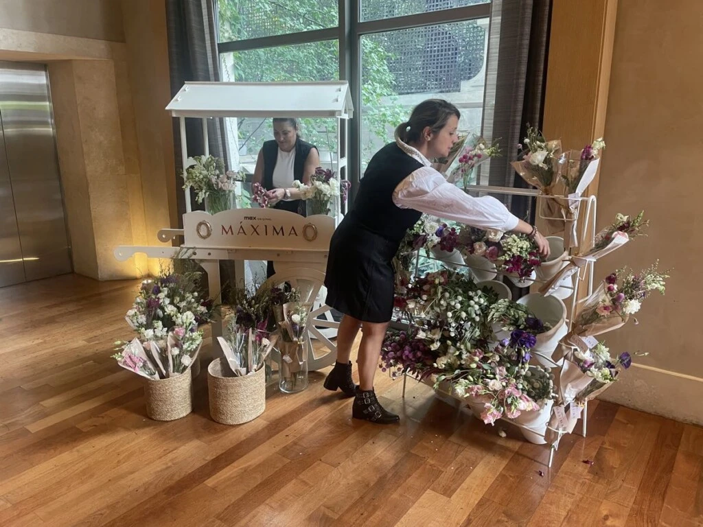 Cada invitado se llevó de recuerdo un ramo de flores multicolores acompañado por una delicada tarjeta decorada por una cinta dorada y el siguiente mensaje: Max original. Máxima.