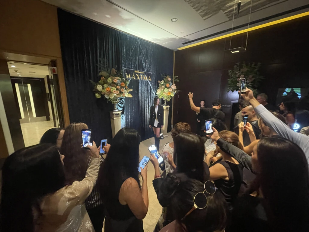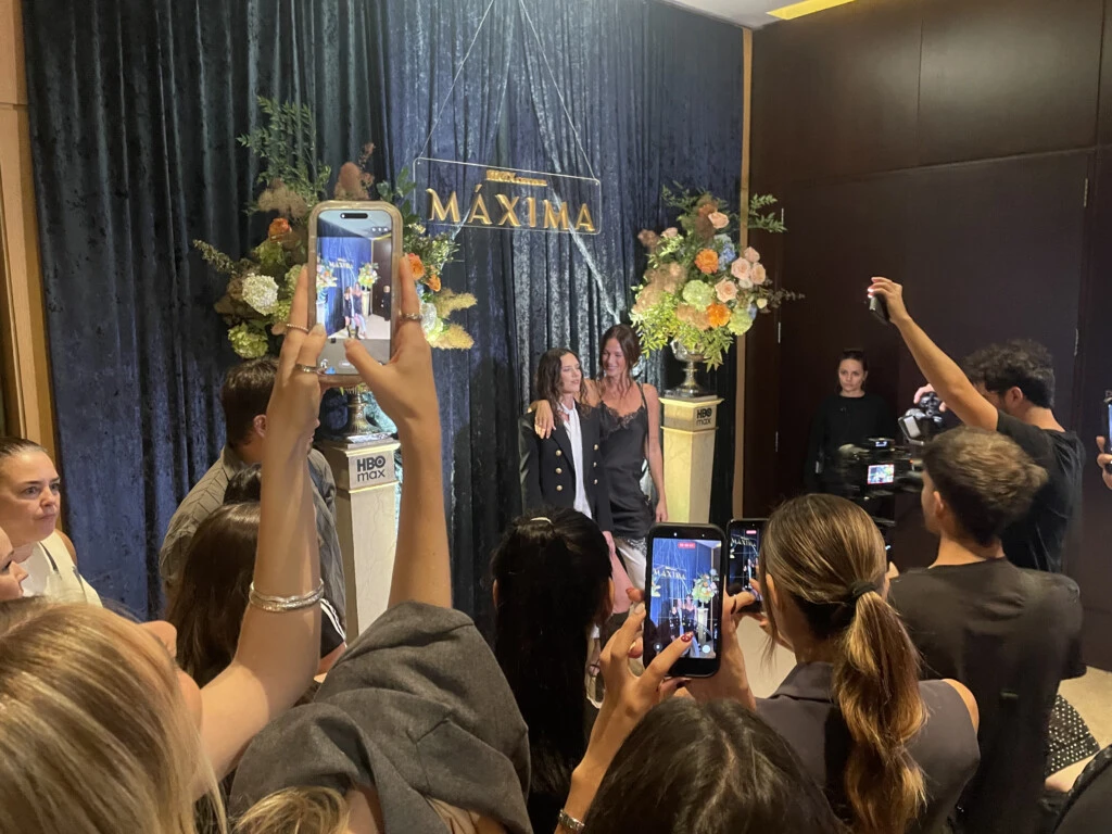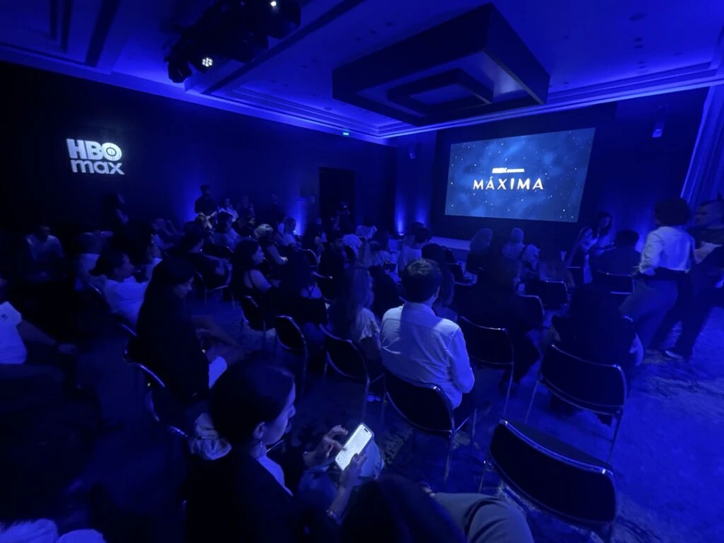 Mariano Cesar (vicepresidente de Entretenimiento General y Estrategia de Programación para América Latina) anunciando los estrenos de HBO Max para 2026, y destinando la frutilla del postre a la visita de Delfina., "La mejor Máxima que podíamos imaginar para empezar a contar esta historia", señaló antes de invitarla a acercarse para que dijera unas palabras. "... Con lo que me gusta hablar en público a mí", pronto ella hizo reír a la platea, antes de agradecer "la presencia de cada uno" y desear que "todos disfruten este estreno. Ojalá les guste".