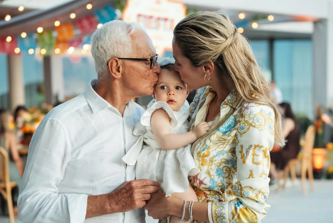 En cuanto a los looks, Eduardo Costantini apostó por el blanco impoluto, perfecto para un sunset frente al mar; Elina lució una camisa de seda estampada con motivos dorados y marinos y peinado semirecogido. Kahlo llevó un vestido blanco con volados, tan clásico como atemporal para un primer año.