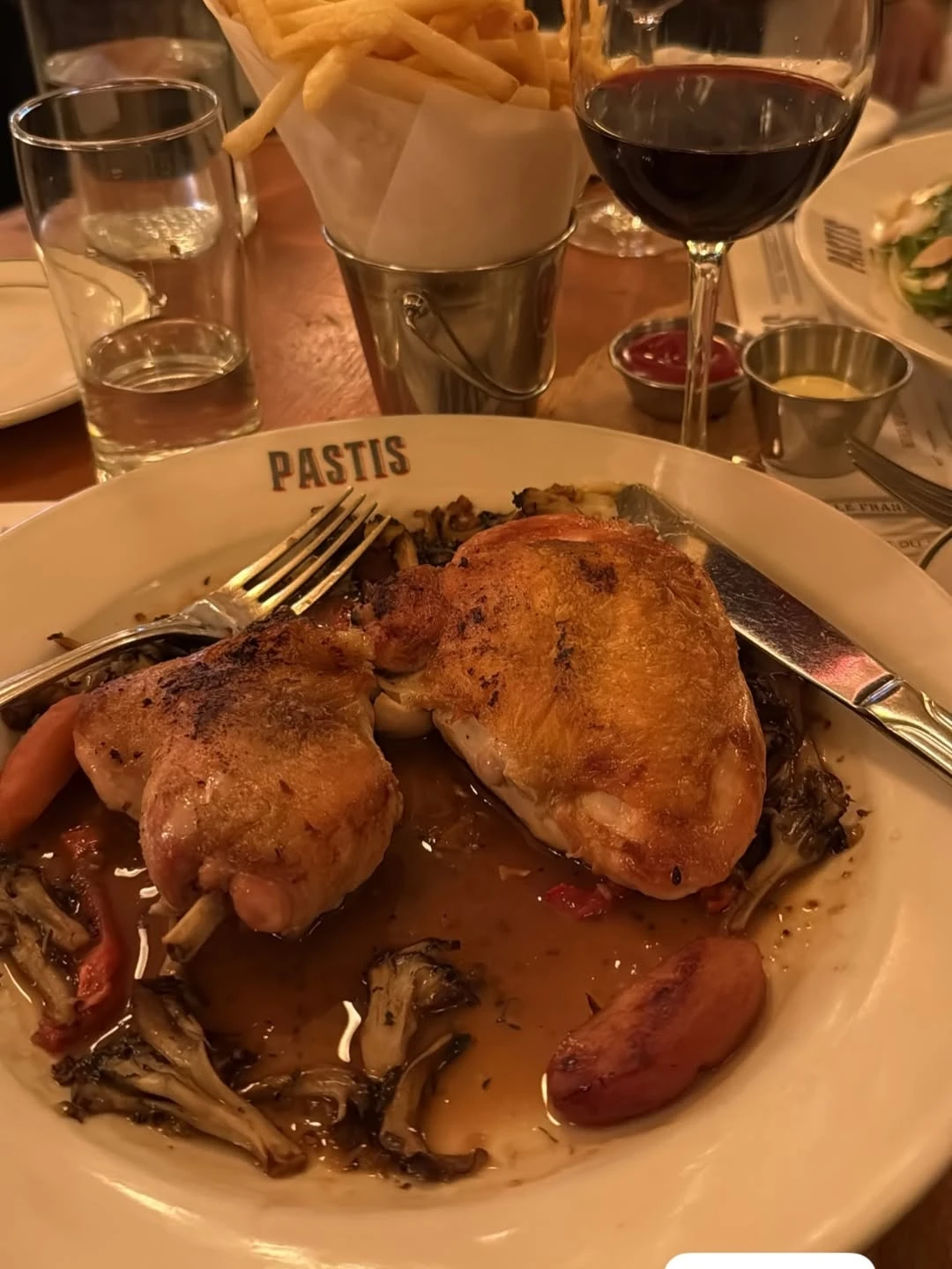 El clima frío en esta época del año —típico del invierno neoyorquino— aportó un encanto especial a la experiencia: camperas gruesas, gorros, bufandas y ese aire helado que invita tanto a caminar como a refugiarse en un buen restaurante. Justamente, una de las primeras paradas de la pareja fue el reconocido bistró Pastis, donde disfrutaron de un plato tradicional acompañado por papas fritas y una copa de vino tinto. La ambientación cálida del lugar contrastó con el clima exterior y marcó el inicio perfecto del viaje gastronómico que siempre implica visitar la ciudad.