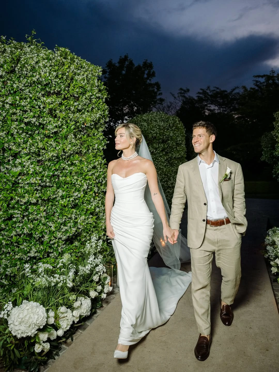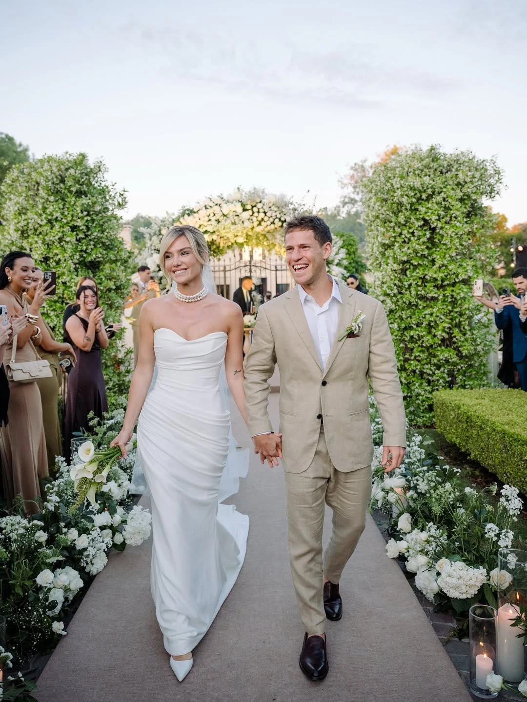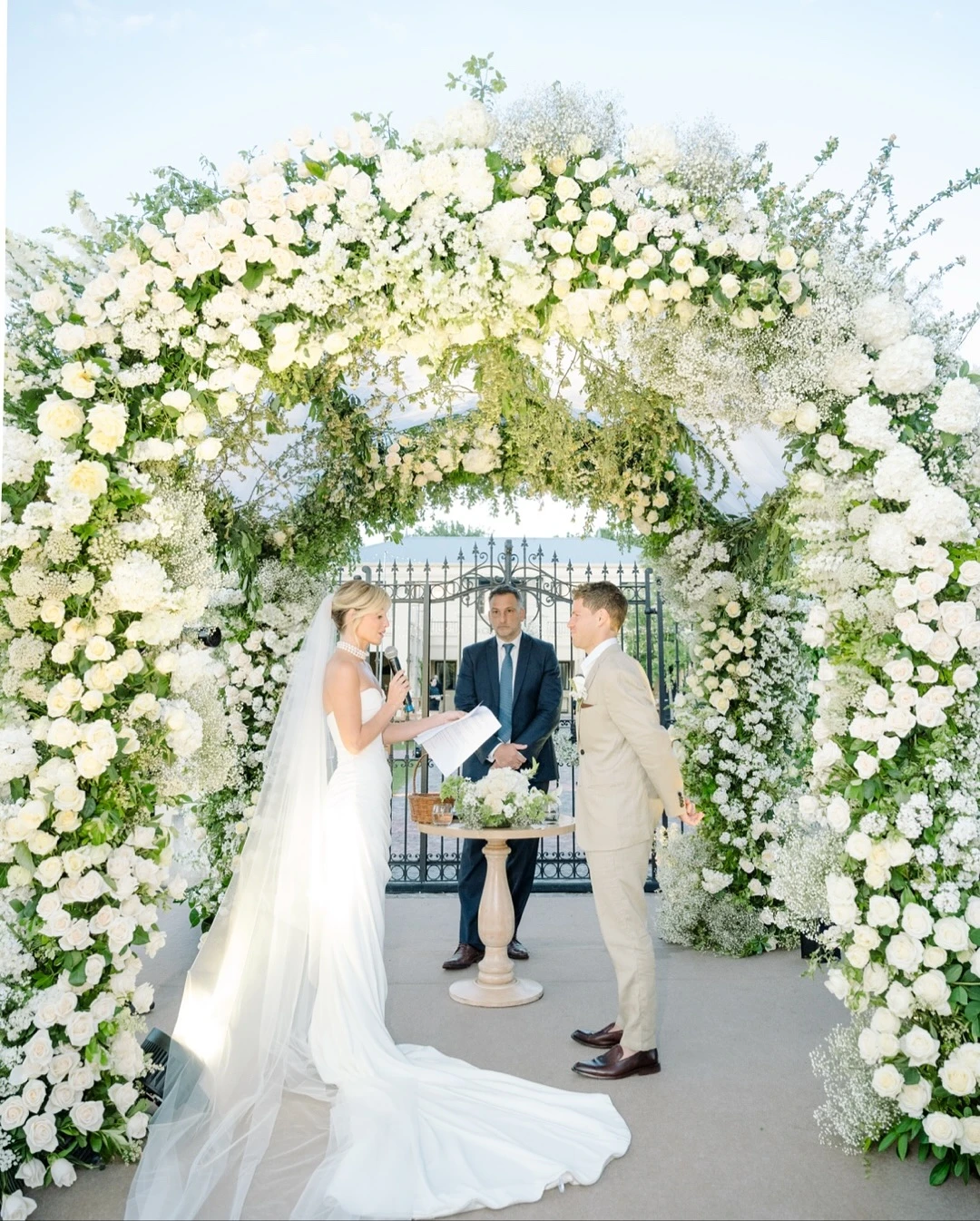En un entorno natural y sofisticado, el extenista y la modelo coronaron su historia de amor con una ceremonia al aire libre marcada por el romanticismo y la emoción. Cientos de rosas blancas, una glorieta de cuento y un cielo despejado acompañaron el momento en que la pareja volvió a decir “sí, quiero” frente a familiares y amigos.
