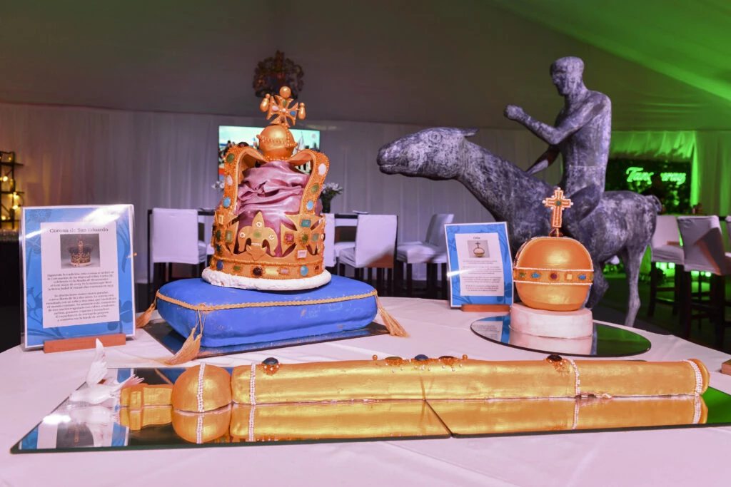 Para la ocasión, la residencia se colmó de alfombras rojas, las flores inundaron los espacios y, en el magno jardín, se instaló una enorme carpa que en la parte exterior mostraba imágenes del rey –siendo coronado, viajando en la carroza, saludando en el balcón del Palacio de Buckingham, etc–, y que en su interior lucía una enorme y golosal bandera británica.