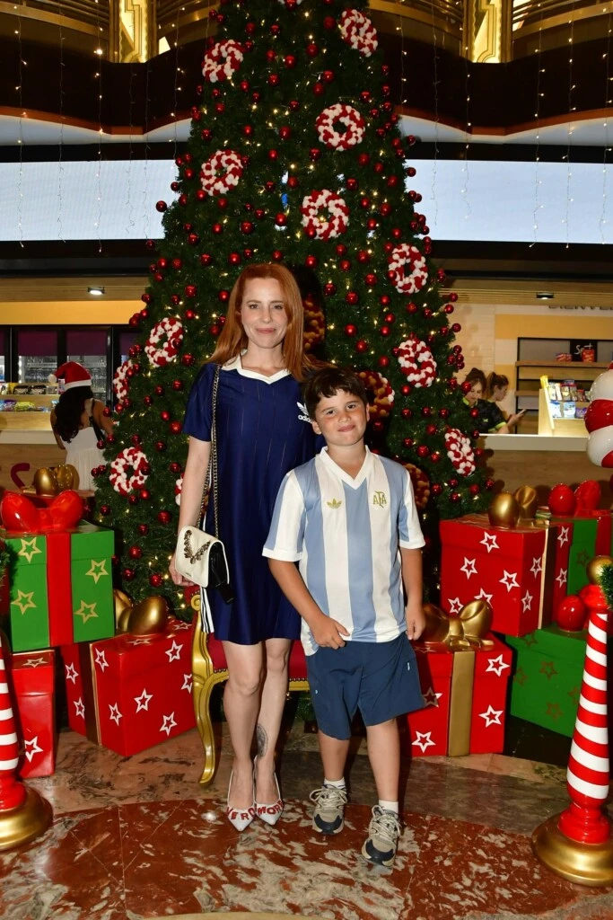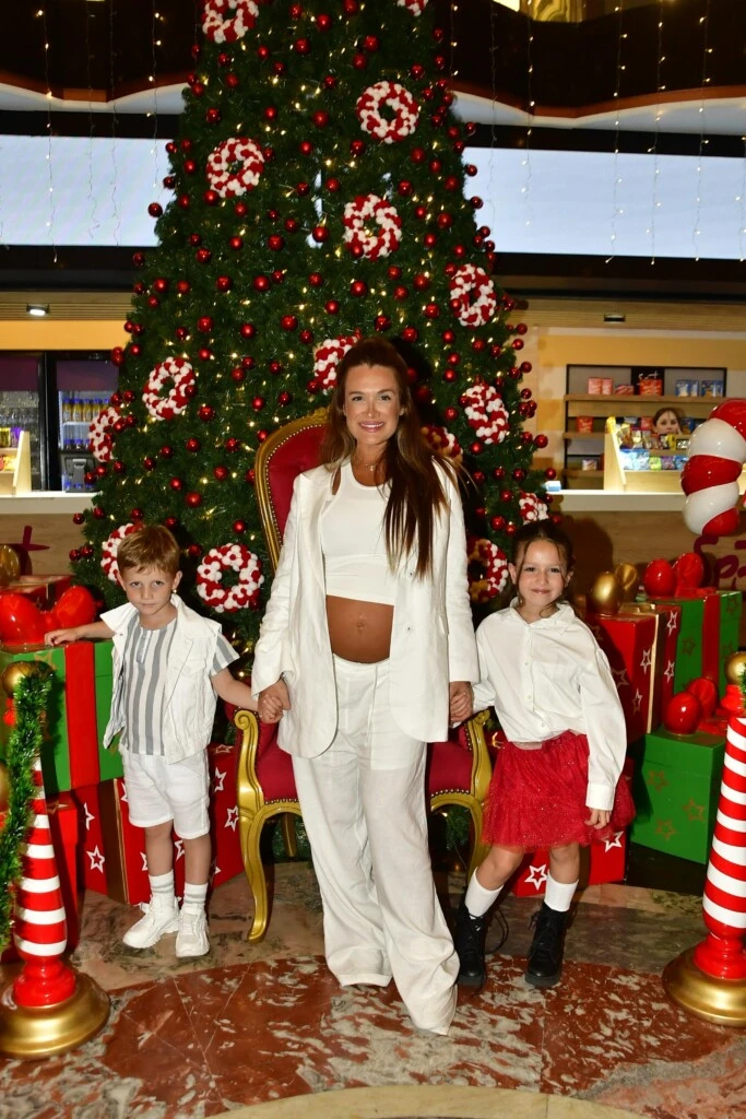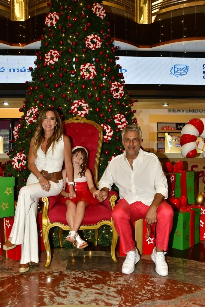 Entre los primeros en llegar estuvo Cami Homs, que asistió acompañada por sus hijos. La modelo atrapó todas las miradas con un look total white de líneas relajadas: un saco abierto que dejó ver su pancita de embarazada y un conjunto en tonos crema que acompañó con accesorios claros. Radiante, posó frente al imponente árbol de Navidad instalado en el hall del teatro.
