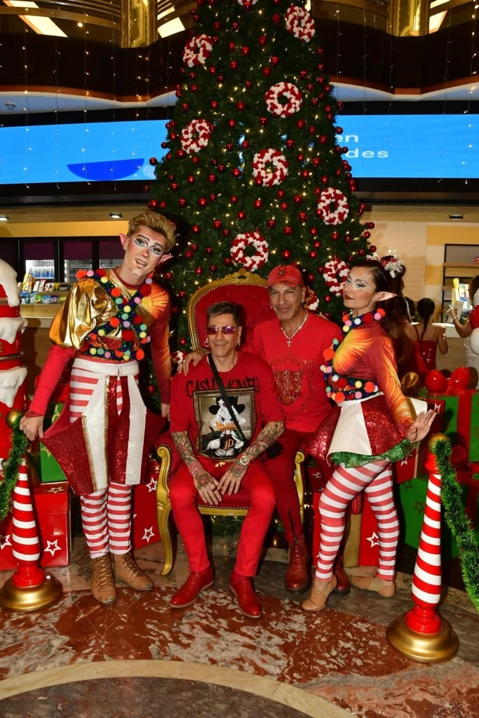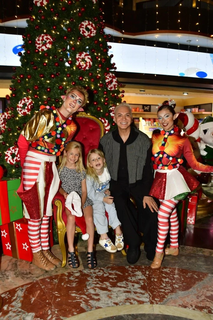 Las dos posaron divertidas ante las cámaras y celebraron la propuesta del espectáculo, que combina acrobacias, cuadros musicales y un despliegue visual que transforma la sala en un verdadero cuento navideño.