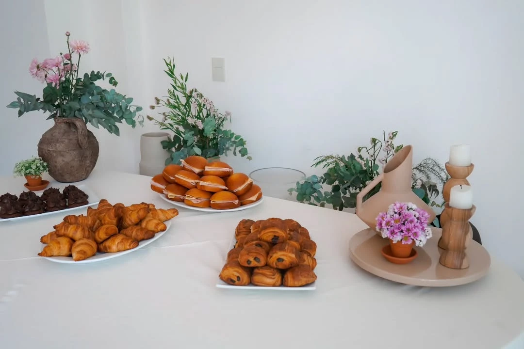 Posteriormente, las niñas disfrutaron de una merienda soñada en una gran mesa. La vajilla estaba cuidada al detalle, destacando los platos en forma de estrella. El catering deslumbró con su variedad y presentación, incluyendo medialunas y facturas rellenas, brownies, sándwiches de miga y una selección de bebidas.