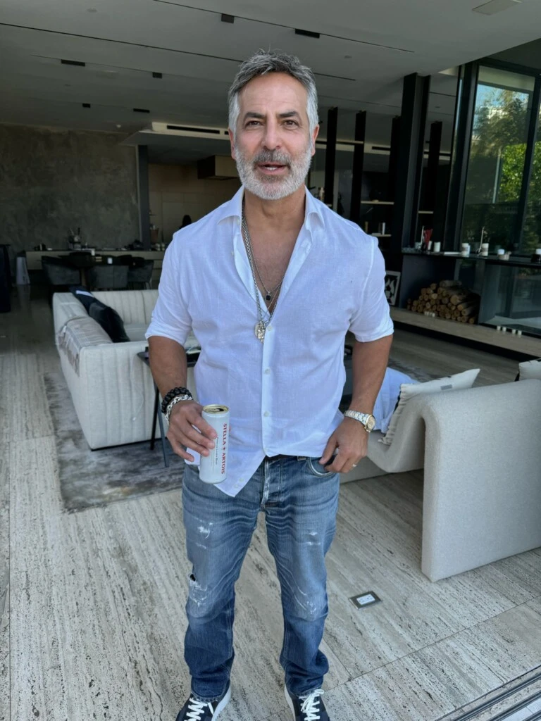 Para esta ocasión, el famoso relacionista público optó por un look descontracturado: jeans claros, camisa blanca y un elegante sombrero negro.
