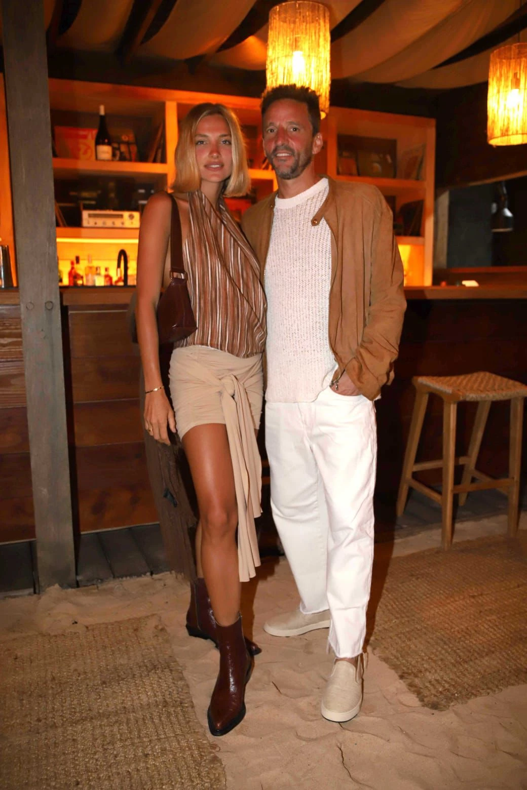 En primera fila, Emanuela de Paula volvió a confirmar su estatus de musa: natural, radiante, posó con el Atlántico detrás. A su lado, la it-girl Concepción Blaquier encarnó el dress code de la temporada —siluetas limpias, texturas que dialogan con la madera y el lino— en postales que condensan el espíritu understated del Este. La secuencia continúa con nombres que cruzan mundos. Desde el polo, Horacio Heguy aportó el pulso deportivo de la noche, mientras que los empresarios Gastón y Santiago Levy aparecen en instantáneas que cuentan, sin palabras, la red cosmopolita que orbita alrededor de Osaka. La gallery también registra al fotógrafo Chino Moro junto a Martina Correa, dos presencias que funcionan como guiño a la escena creativa que el lugar convoca cuando el sol cae y el Este se enciende.