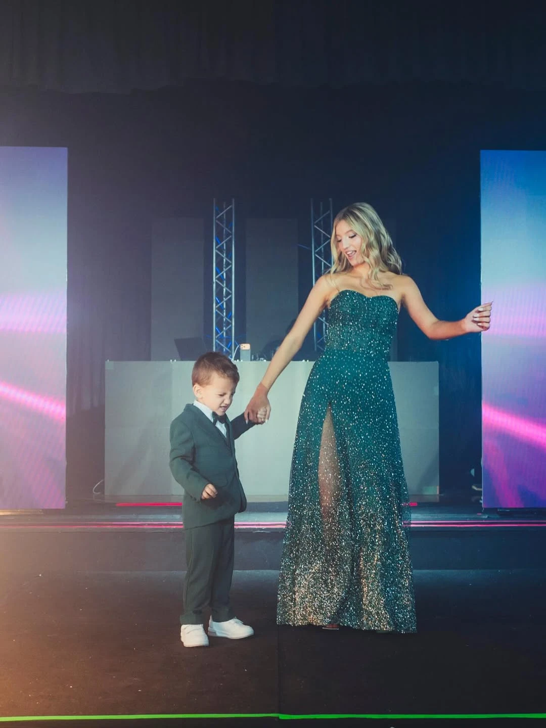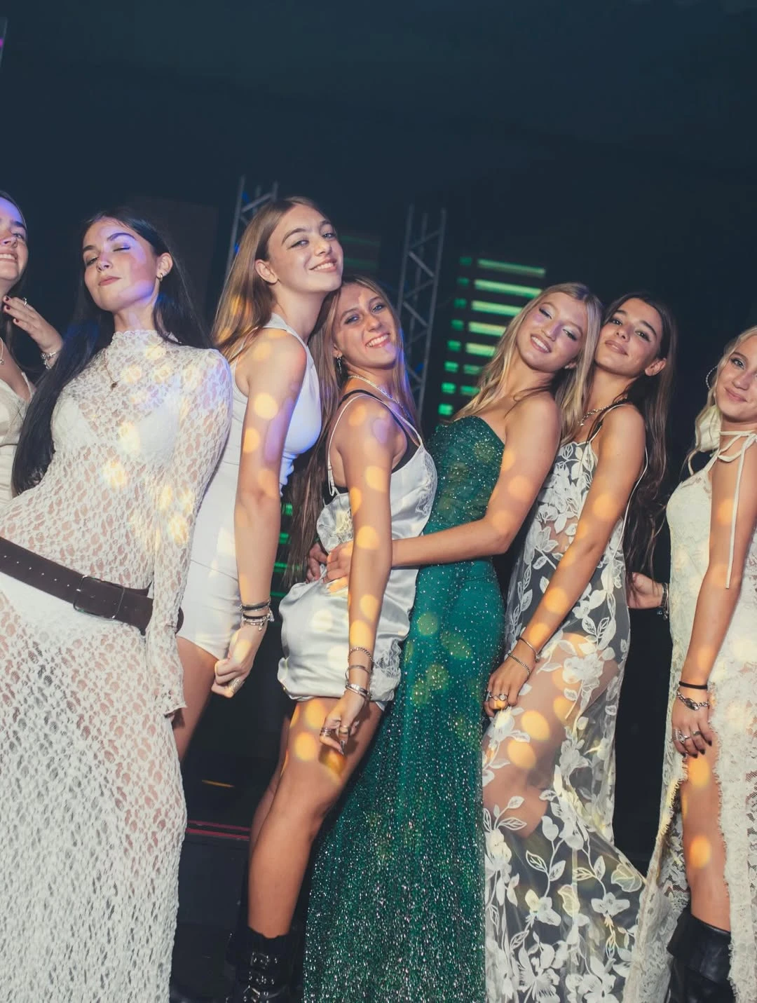 Uno de los grandes protagonistas de la noche fue el vestuario. La quinceañera lució tres vestidos impactantes: uno diseñado por Laurencio Adot —el mismo creador que la había vestido en uno de sus festejos anteriores— y otros de Ona Saez, con los que deslumbró en la pista. Los tres looks reflejaron su estilo joven y sofisticado, en sintonía con la estética general del evento.