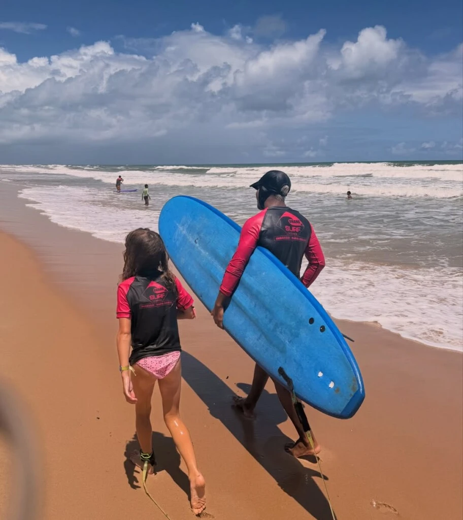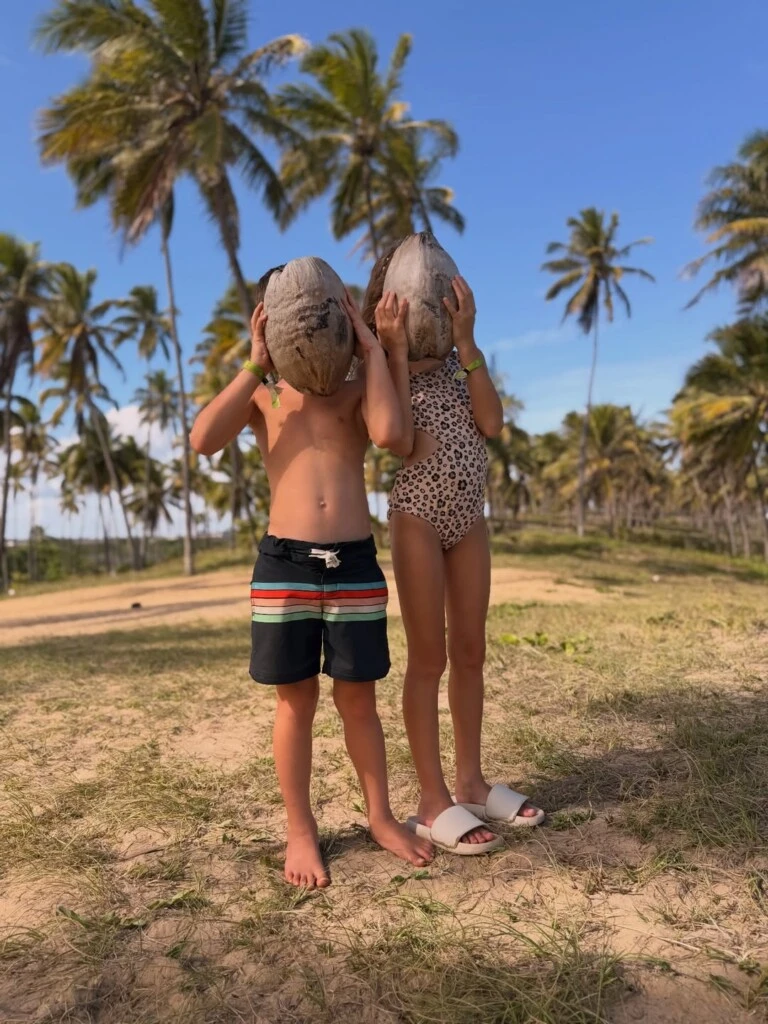 Las postales que compartió reflejan un viaje tan relajado como activo. Entre días de sol, playa y arena, la familia se mostró versátil: hubo momentos de lectura, juegos sobre la orilla, clases de surf, caminatas entre la vegetación y largas sobremesas con sabores locales. No faltaron tampoco los clásicos tragos de playa brasileños, aliados infaltables de las tardes cálidas.
