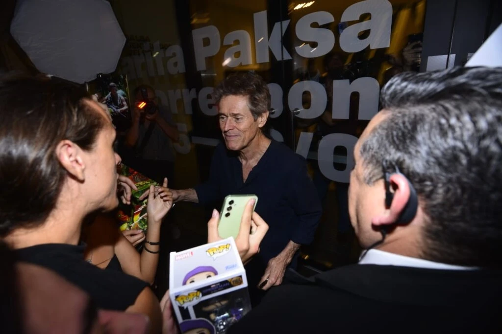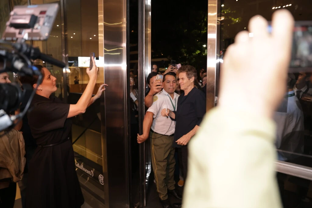 Desde su llegada a la alfombra roja en la puerta del Malba, Dafoe se mostró cercano, cálido y agradecido con quienes se acercaron para saludarlo. Antes de ingresar, se tomó su tiempo para interactuar con los presentes: aceptó selfies sin dudar, firmó autógrafos con una sonrisa y atendió cada pedido con paciencia y simpatía.