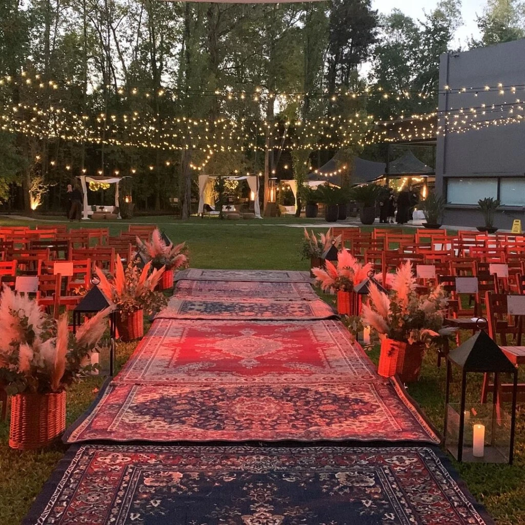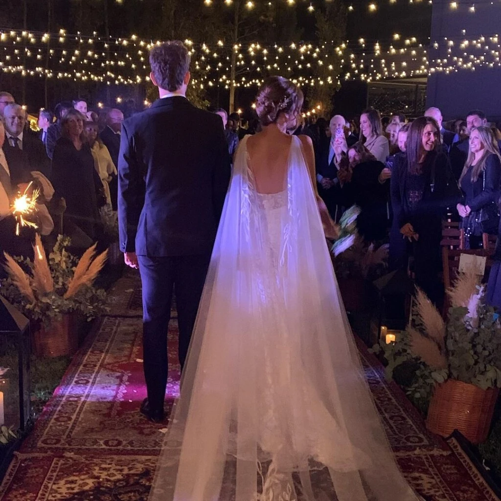 Previo al festejo nocturno, la pareja vivió una íntima ceremonia a cargo del sacerdote Eusebio Hernández Greco, quien es Párroco de la Parroquia Ntra. Señora de Caacupé de la zona de Caballito y con quien Carolina ha compartido importantes momentos de devoción, así como actividades solidarias hacia las comunidades vulnerables.