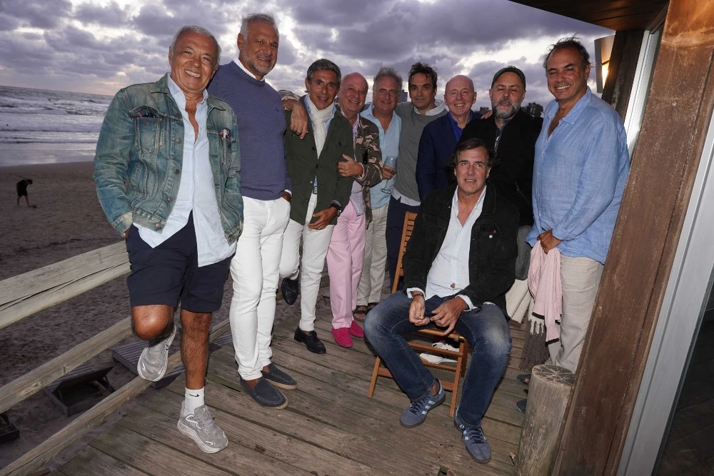 Al llamado de Cabrales se sumaron amigos y referentes de la escena esteña: Leo Mateu, Alejandro Lacroix, Tato Lanusse, Roxana Zarecki, Sebastián Bago, Joe Miranda, Teresa Calancra, Evelyn Scheid, Miguel Sulichin, Willy Laborda, Damián Pozzoli, Luis Galli, José Estes, Sara Fleming, Aurita Villanueva, Luis Braverman, Miguel Zarzur, Marcelo Paz y Guga Castagnino, entre otros integrantes del grupo conocido como “Los Pingüinos”. Entre charlas, risas y teléfonos atentos a capturar la hora mágica, el photo call se volvió un desfile espontáneo de looks y poses playeras.