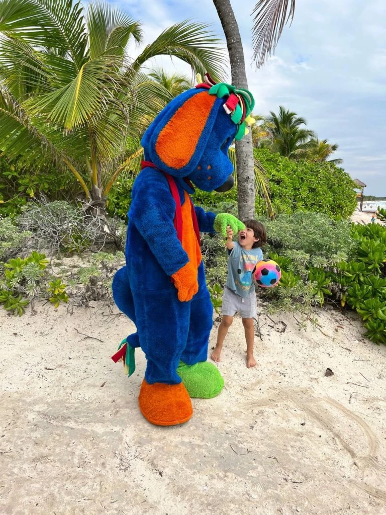 La celebración del cumpleaños de Viggo comenzó en el hotel con un desayuno dulce, que incluyó waffles y ensaladas de frutas y continuó por la tarde con zambullidas en la piscina y juegos en la playa, rodeado por globos.
