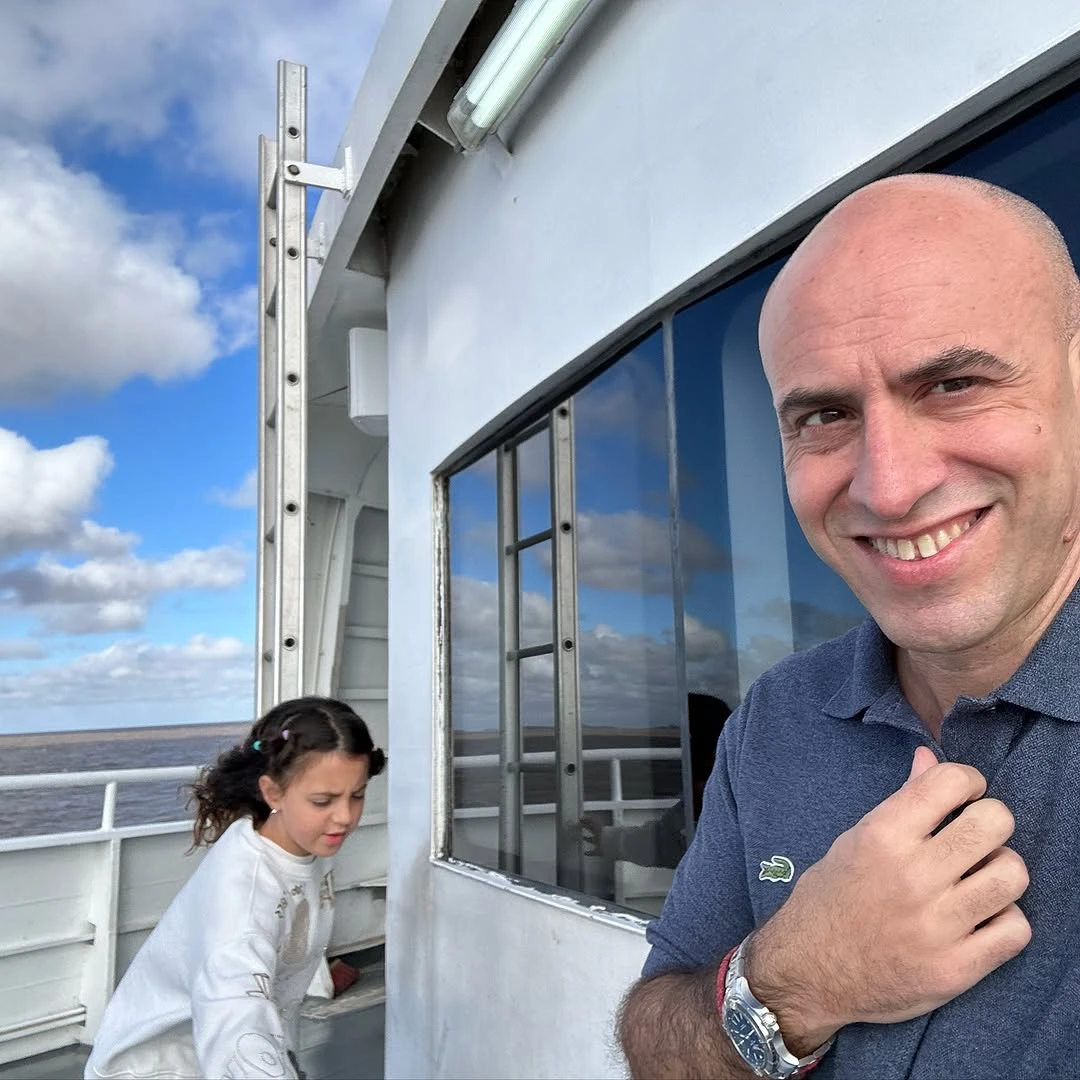 Es que, además de desembarcar en Uruguay por trabajo, el Pelado viene aprovechando el viaje para disfrutar algunos días en familia con sus hijas y su novia, Sol Simunovic, y también de una de sus pasiones: la náutica.