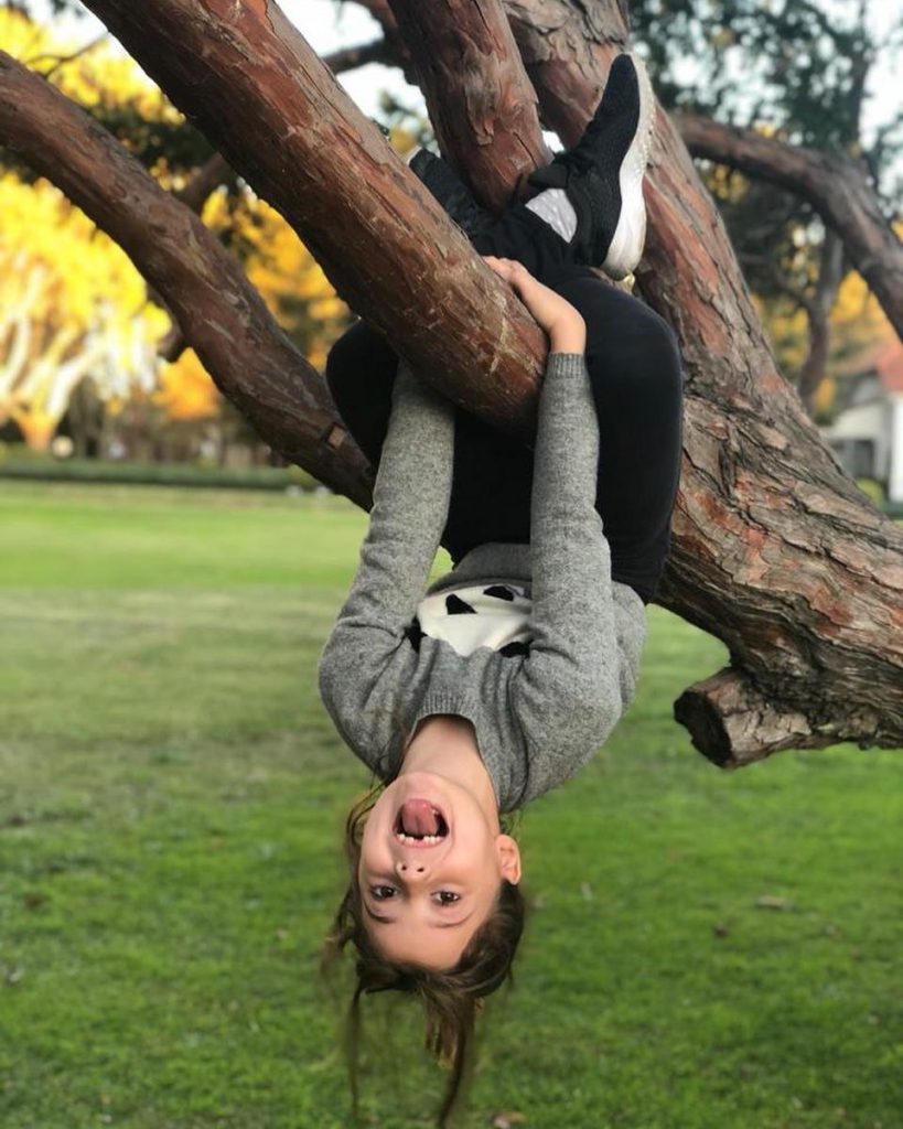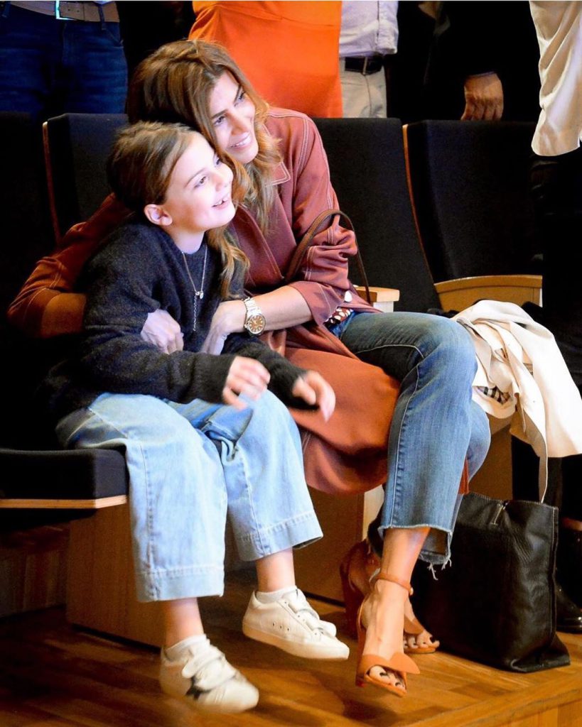 Igualita a su mamá: con denim y buzo. Noviembre 2019.