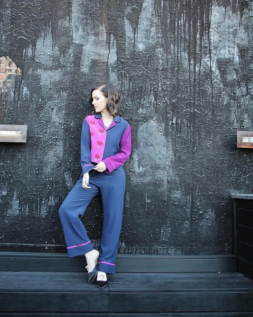 Rachel Brosnahan (30), la actriz de The Marvelous Mrs. Maisel, eligió lucir un pijama en distintos tonos de púrpura, violeta y rojo, diseñado por Kristine Rodin. Según contó la actriz de, el traje será subastado luego de la ceremonia y lo recaudado será donado para causas solidarias.