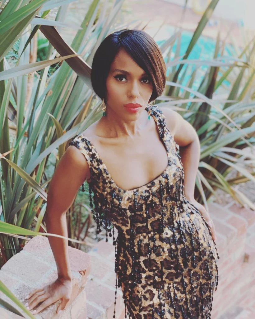 Kerry Washington (43), la actriz que interpreta a Olivia Pope en la serie Scandal, eligió un vestido negro y dorado de Dolce Gabbana, zapatos Louboutin y joyas Chopard.