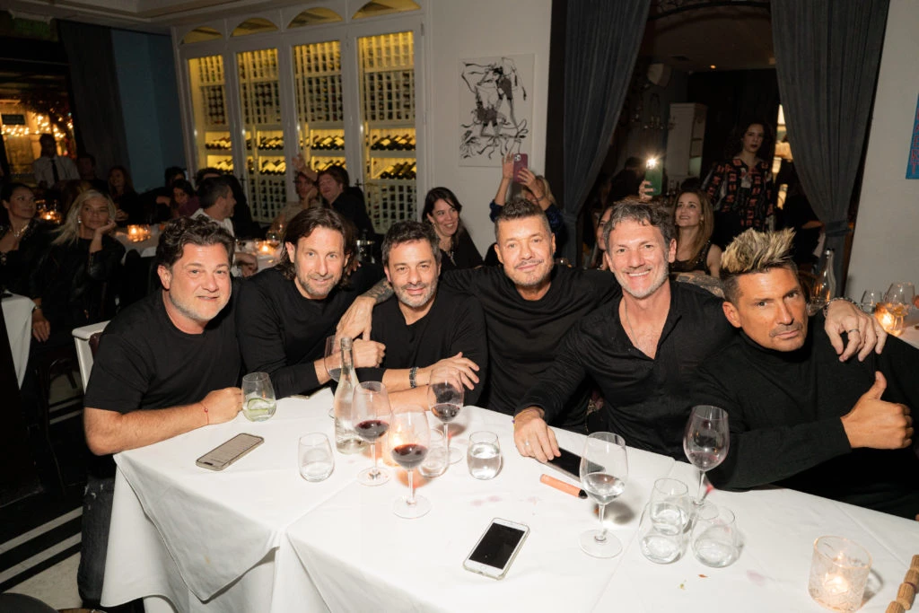 Marcelo Tinelli, que hoy estrena "Canta conmigo ahora", eligió un look total black. Asistió al evento con Hernán de Laurente, Santiago Braverman, Lautaro Mauro y Luciano "Tirri". La propuesta gastronómica estuvo a cargo del chef Julián del Pino.