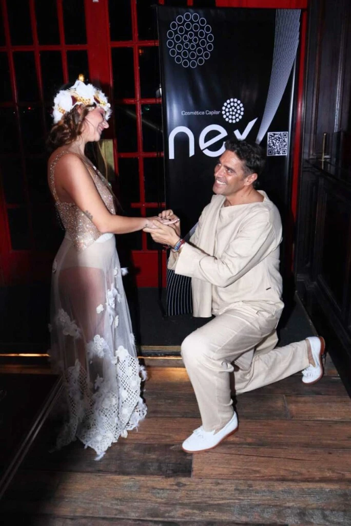 Matías Alé y su novia, Martina Vignolo, se comprometieron este lunes por la noche en un evento exclusivo que tuvo lugar en un famoso bar de la Costanera y para sorpresa de todos los presentes, cambiaron sus looks para el intercambio de alianzas.