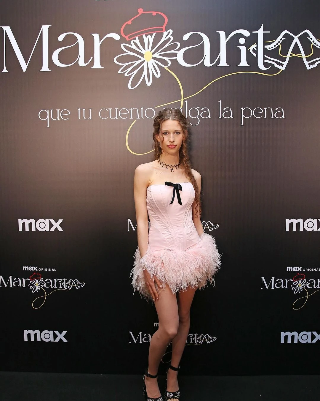 Mery del Cerro fue otra de las protagonistas de Margarita que deslumbró en la avant première con un vestido negro troquelado que presentaba un claro guiño al nombre de la tira de Cris Morena, firmado por Javier Saiach.