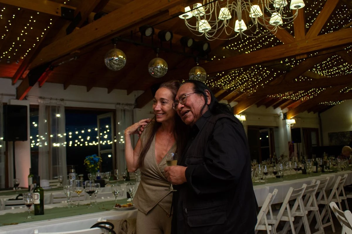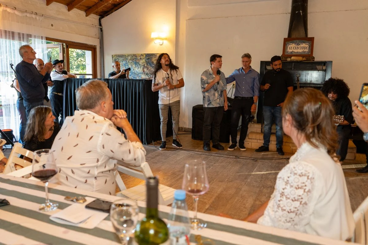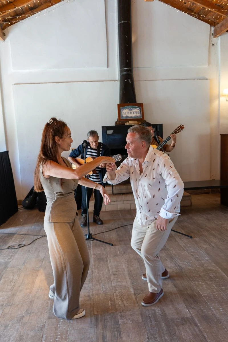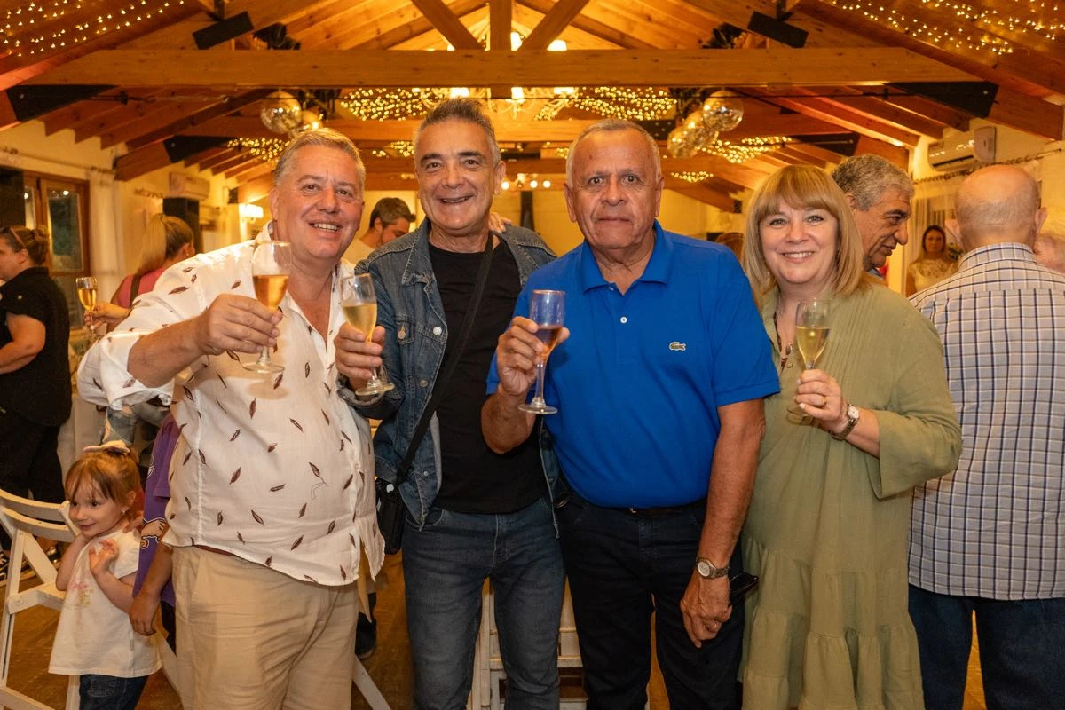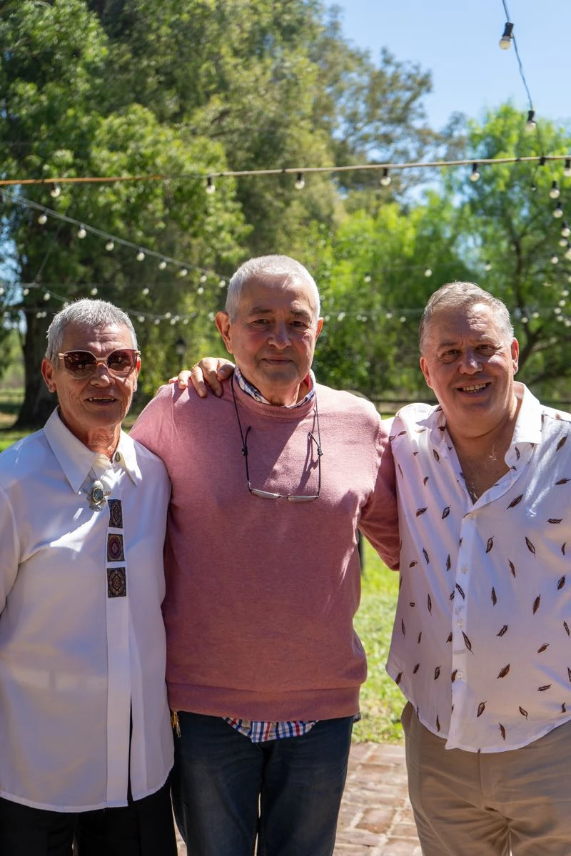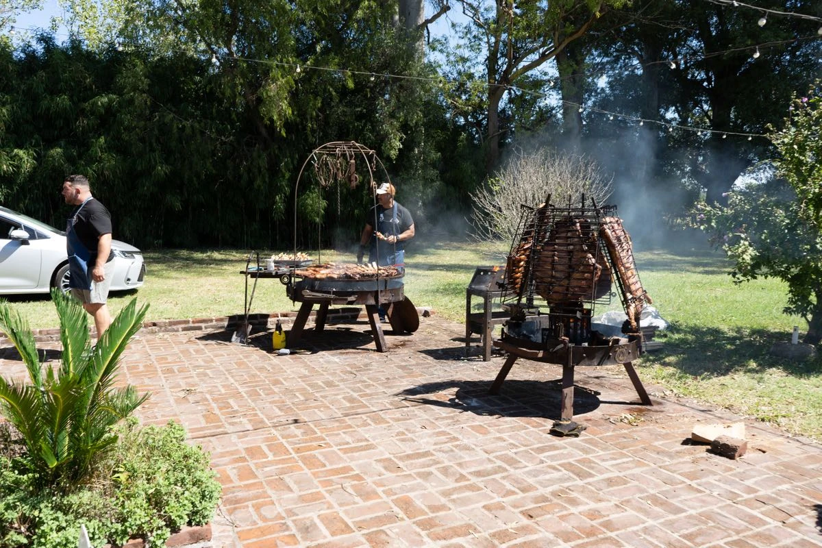 Con un menú bien criollo, empanadas, achuras, asado a la estaca, vacío y cordero con un cierre dulce, torta y masas, barra de tragos, vinos y champagne para el brindis, el festejo se extendió varias horas, entre música, abrazos y celebración.