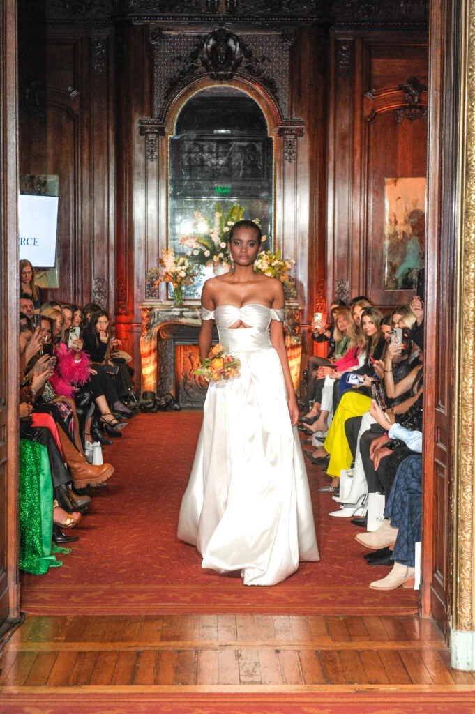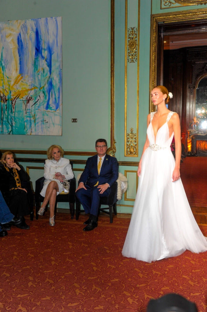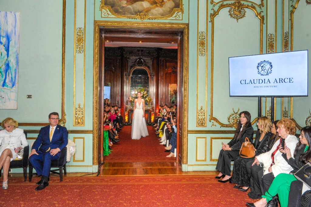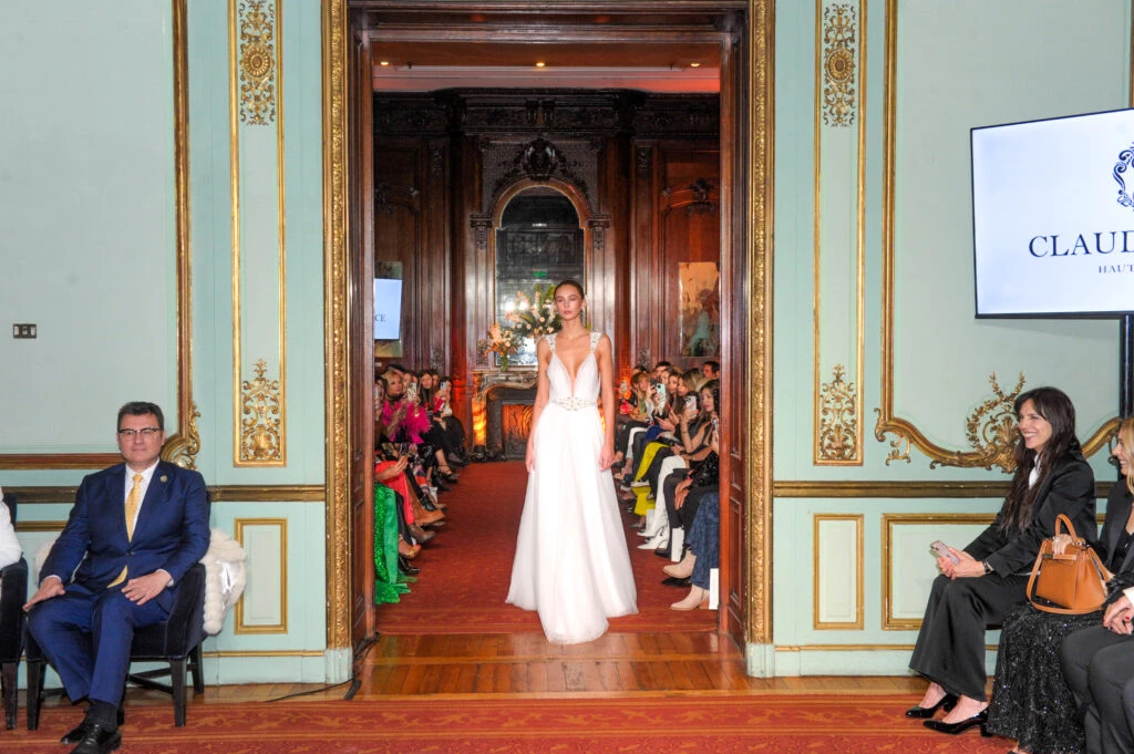 Las sedes suelen ser museos, galpones y hasta estacionamientos de centro comerciales. El lugar elegido por Claudia Arce para presentar su nueva colección fue la mansión del Four Seasons Buenos Aires, donde 36 modelos lucieron sus icónicos vestidos de novia.